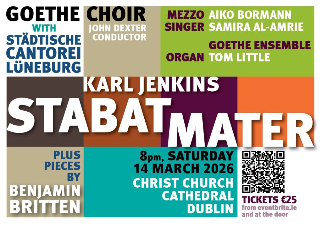 Join us on Sat 14 March in Christ Church Cathedral, Dublin for a rare performance in Ireland of Stabat Mater by the Welsh composer Karl Jenkins, along with pieces by Benjamin Britten to mark the 50th anniversary of the composer’s death. Go to our Events page for more details.